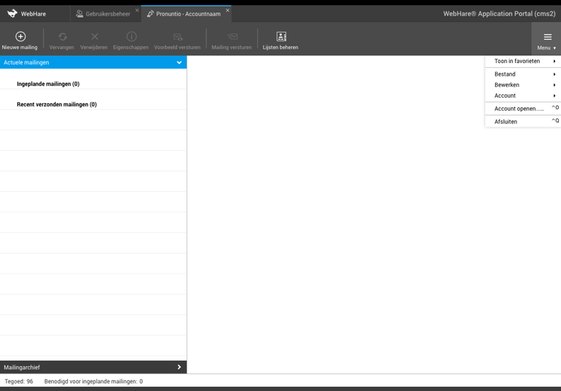 - Actuele mailingen , met daarin de ingeplande mailingen en recent verzonden mailingen.