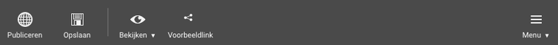 Bovenaan de applicatie is de knoppenbalk te vinden, met rechts 'het hamburger menu'. De acties worden onder "Acties" nader toegelicht.